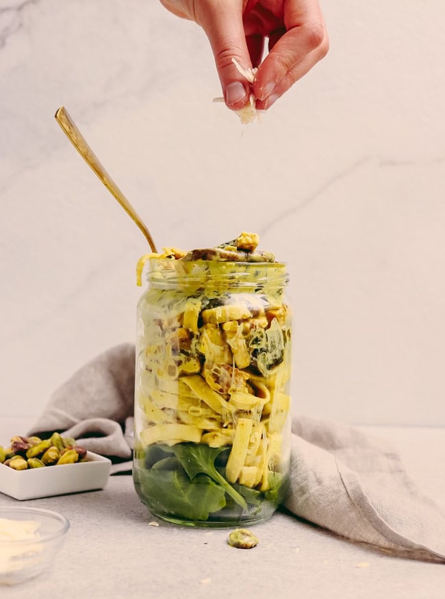 Een leuke pasta met pistache en pesto, perfect voor in een Djar! Geniet van deze Pasta-Djar die in slechts 20...