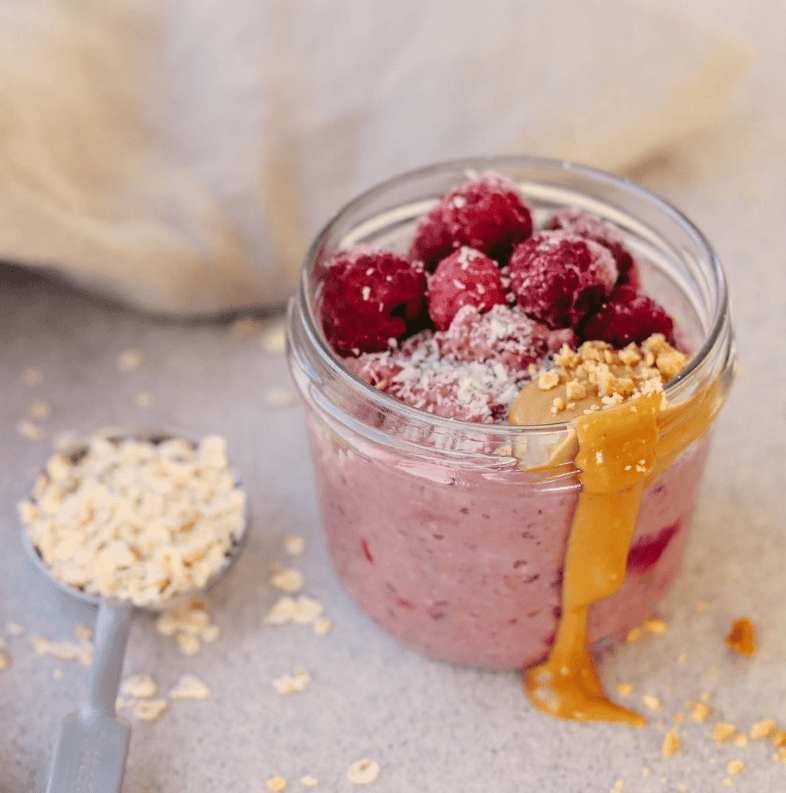 Frambozen havermout met gember, kokos en pindakaas 💗